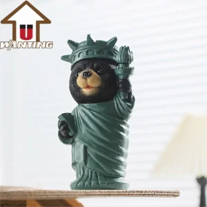 Personality Creative Art of Lady Liberty Bear Cartoon Style Resin Home Ornaments